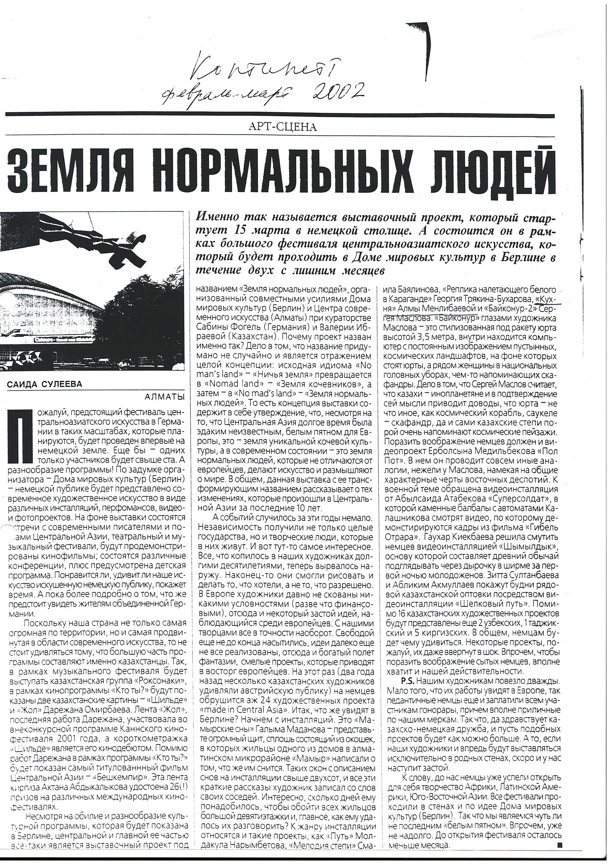 ... концепция выставки содержит в себе утверждение, что, несмотря на то, что Центральная Азия долгое время была эдаким неизвестным, белым пятном для Европы, это — земля уникальной кочевой культуры, а в современном состоянии — земля нормальных людей, которые не отличаются от европейцев, делают искусство и размышляют о мире.